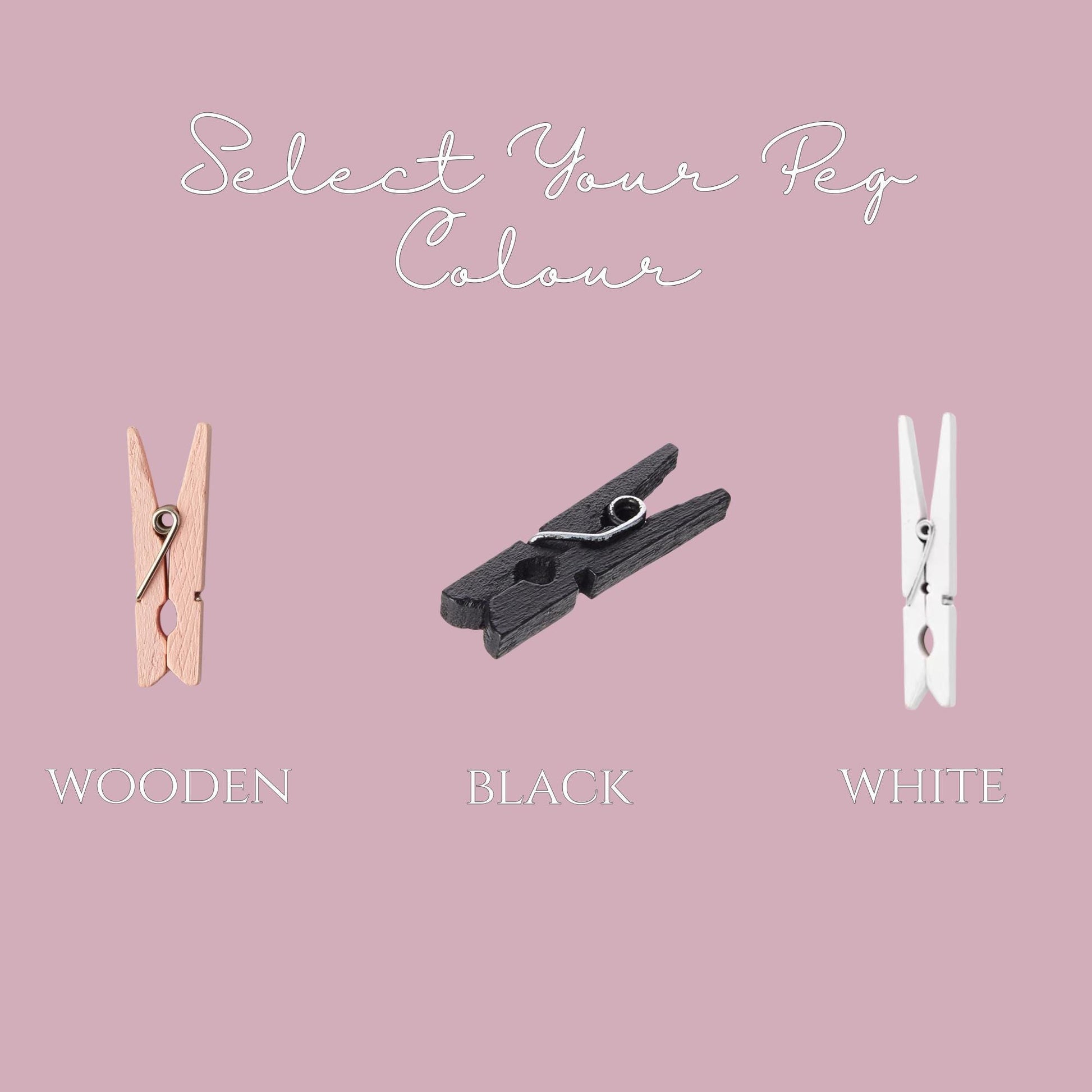 ✔ 20 edible drink toppers with pegs in the colour of your choice (white, black or standard wood)