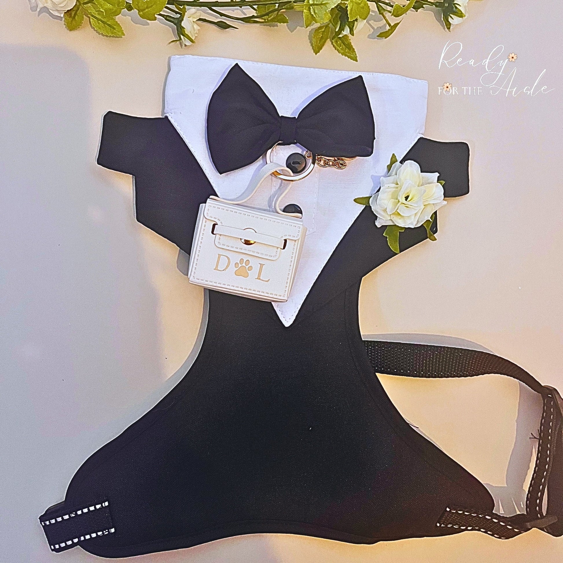 Make your furry friend the talk of the town with our stylish and versatile Dog Tuxedo Harness Outfit. Perfect for weddings or special occasions, this ensemble includes everything your pup needs to steal the spotlight!