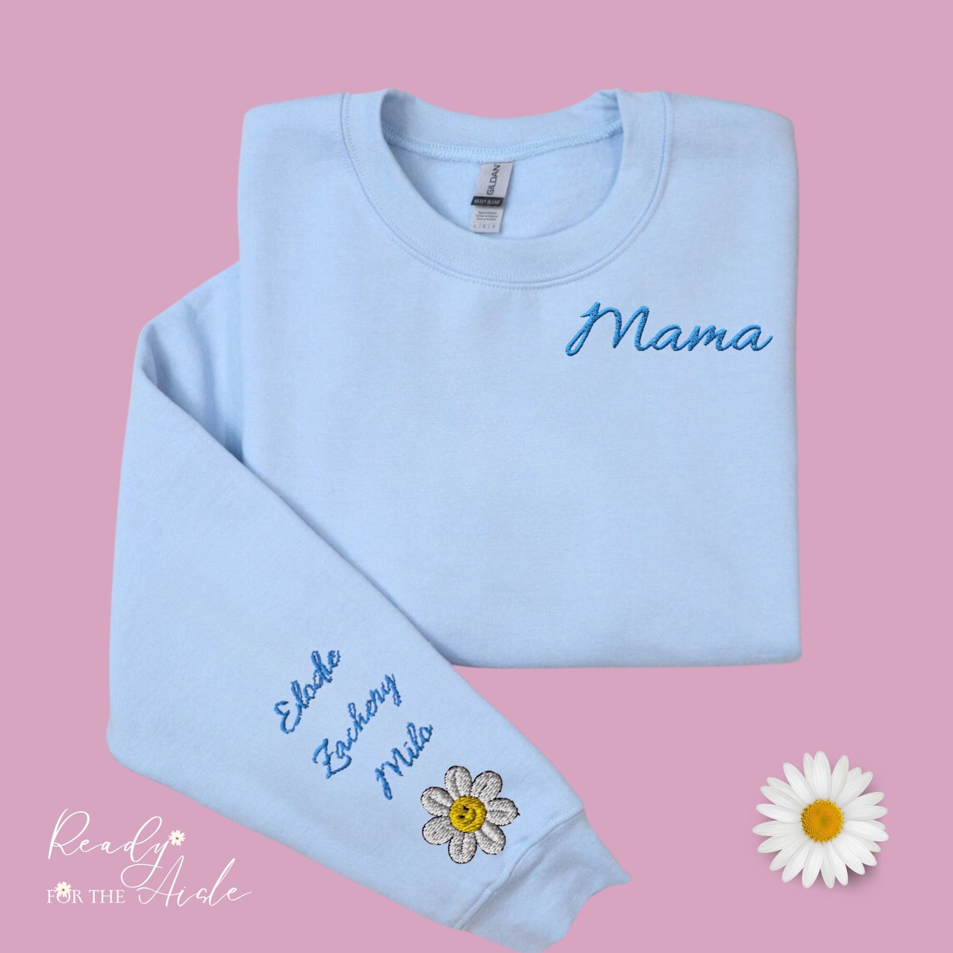 Give your mom, friend, granny, cousin a gift they'll treasure forever with our custom embroidered Mama sweatshirt. Order now and make her feel special! 💗