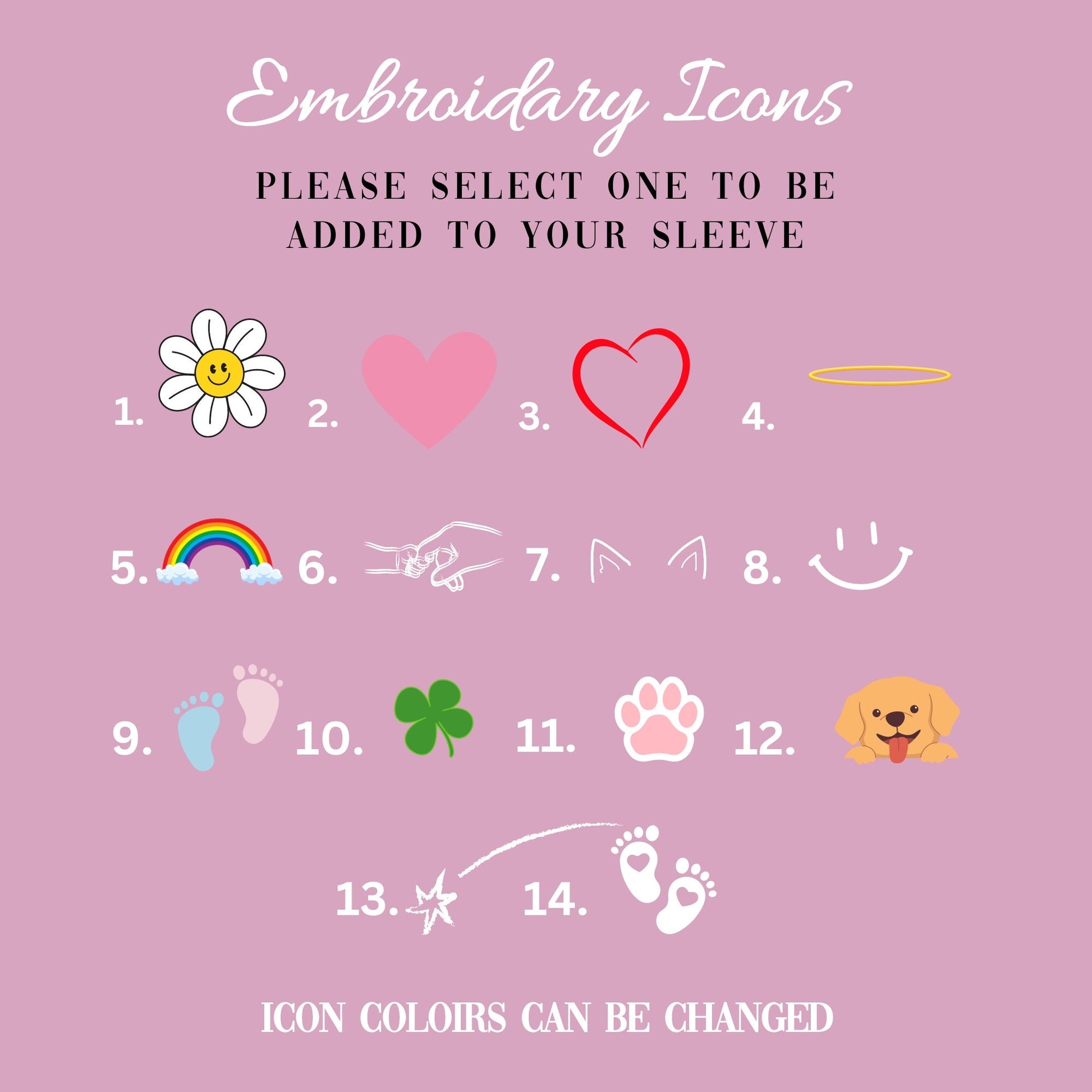 3.Personalize: Enter the names for embroidery in the personalization box and select icon if wanted.