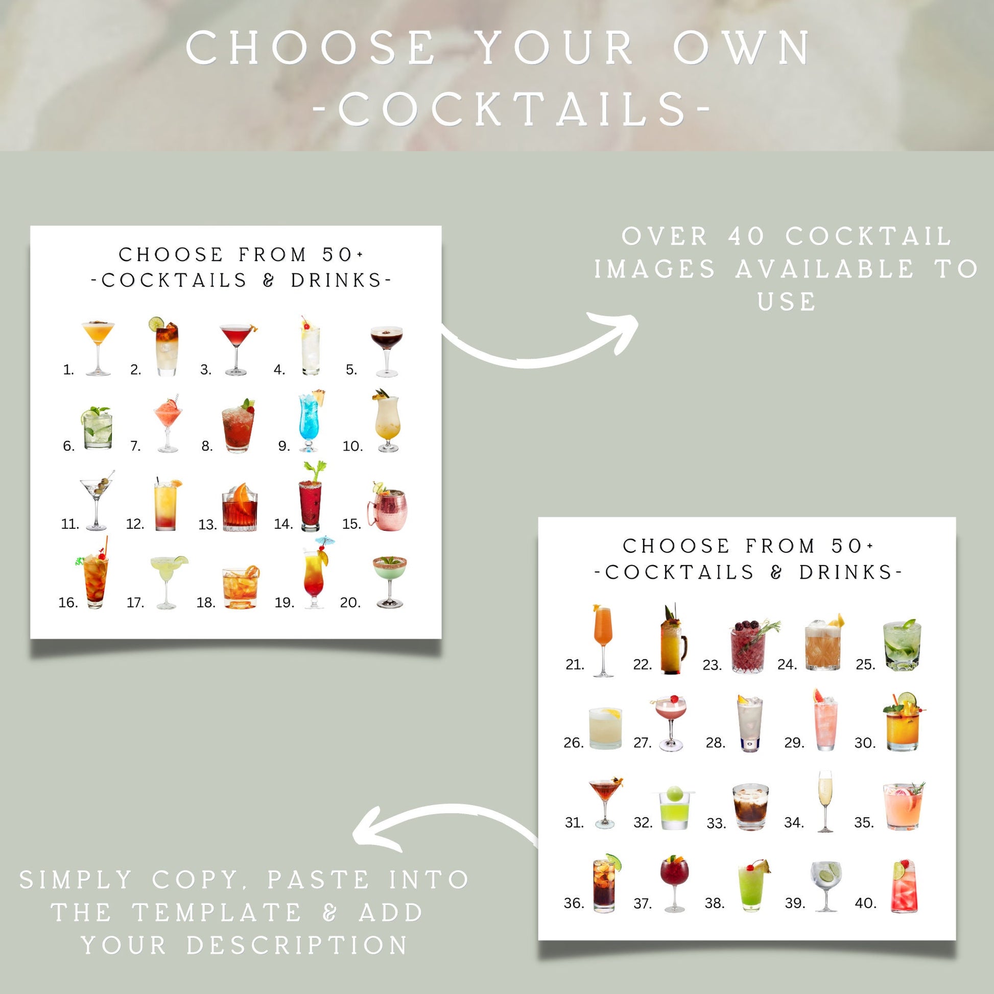 This is a beautiful pet-themed, Signature Cocktails Template that can be used for any occasion such as a wedding, birthday, baby shower, hen do, and more.