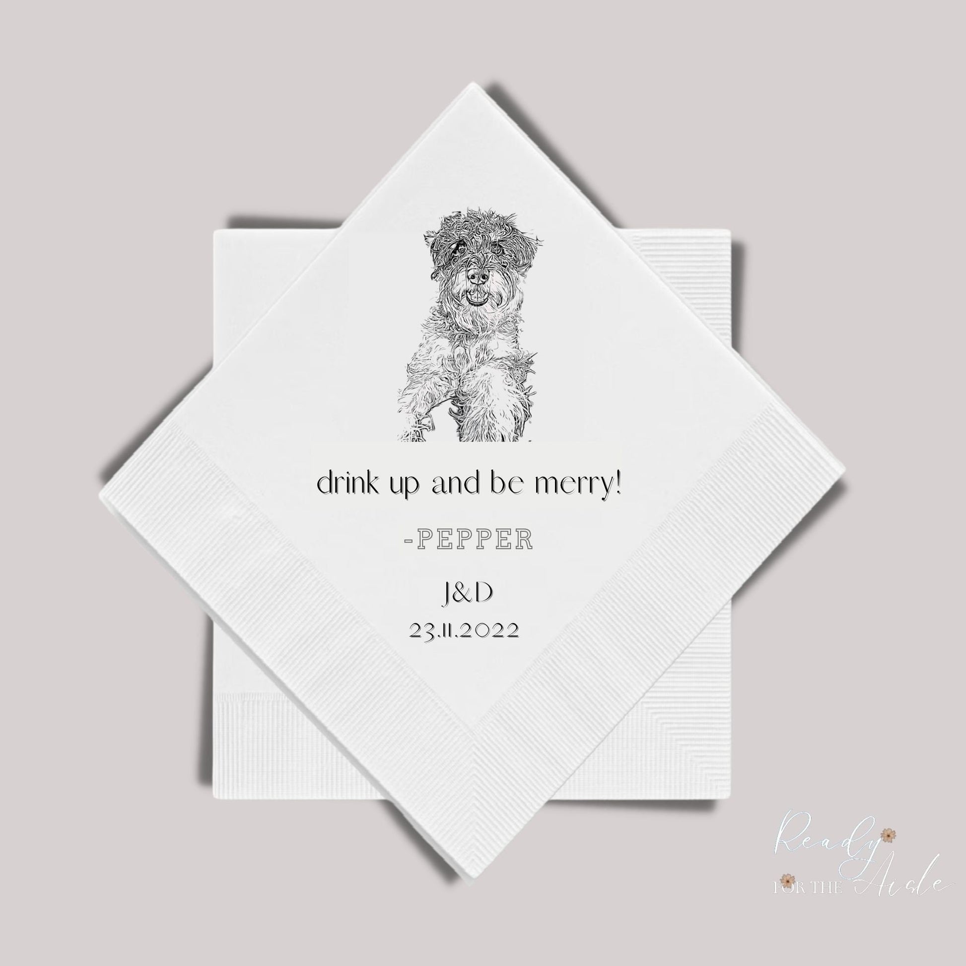 Introducing our personalized dog cocktail wedding napkins - the perfect addition to your special day!