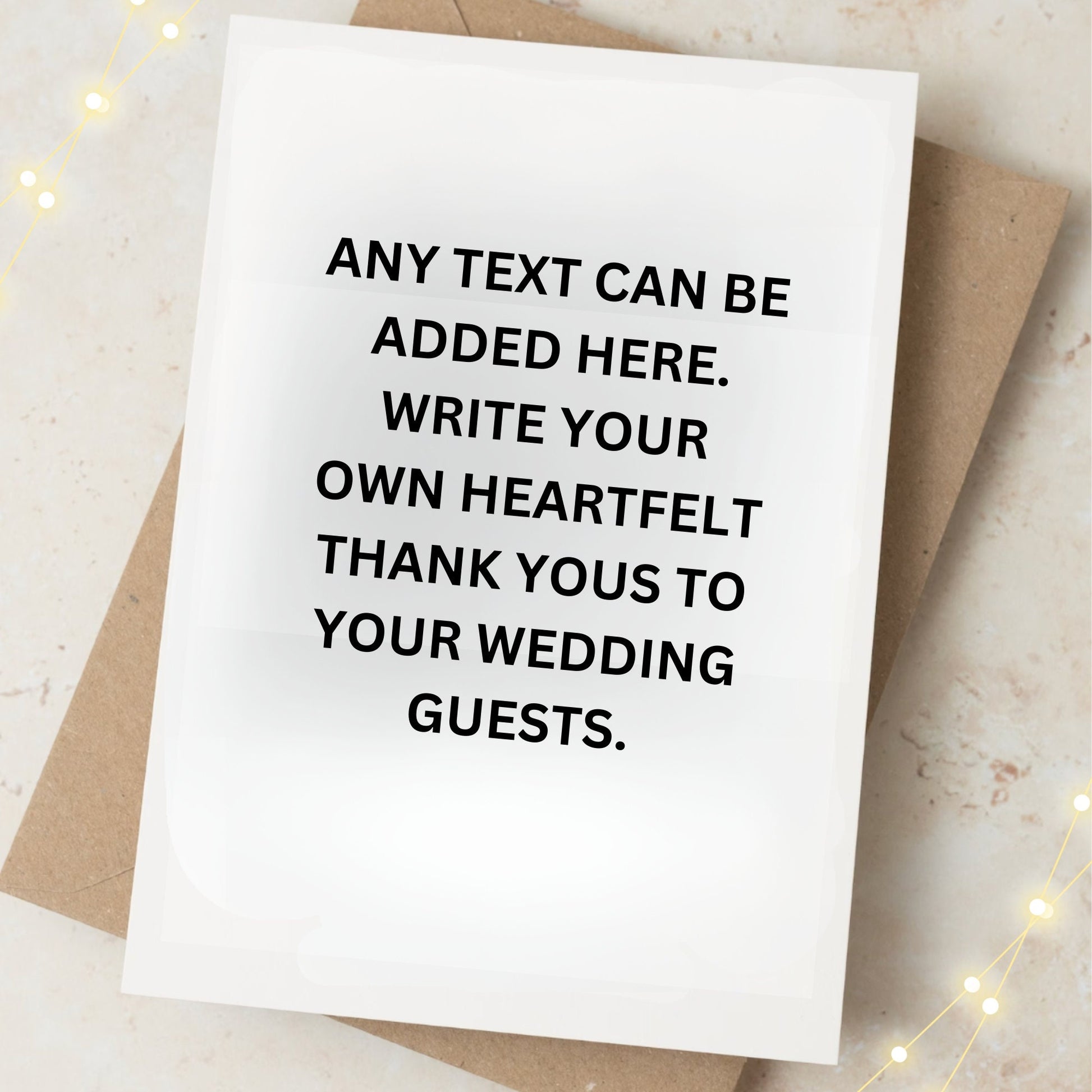 Express your gratitude in style with our exquisite Wedding Thank You Cards! Impeccably crafted and designed with love, these cards are more than just notes – they're heartfelt expressions of appreciation.