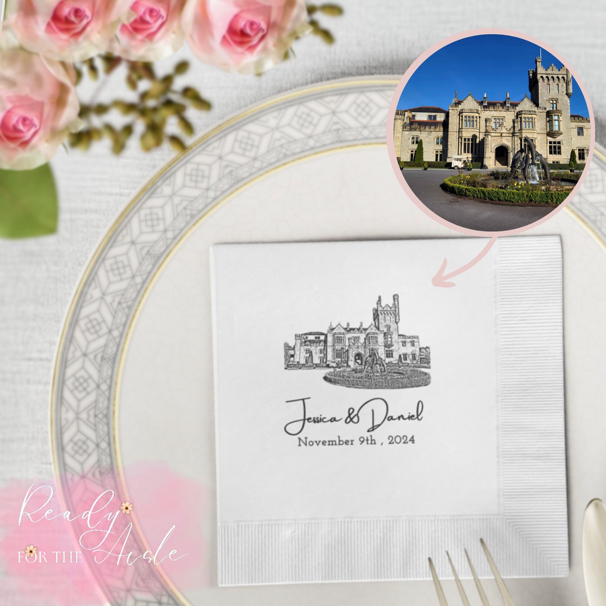 Introducing our personalized sketched wedding venue napkins - the perfect addition to your special day!