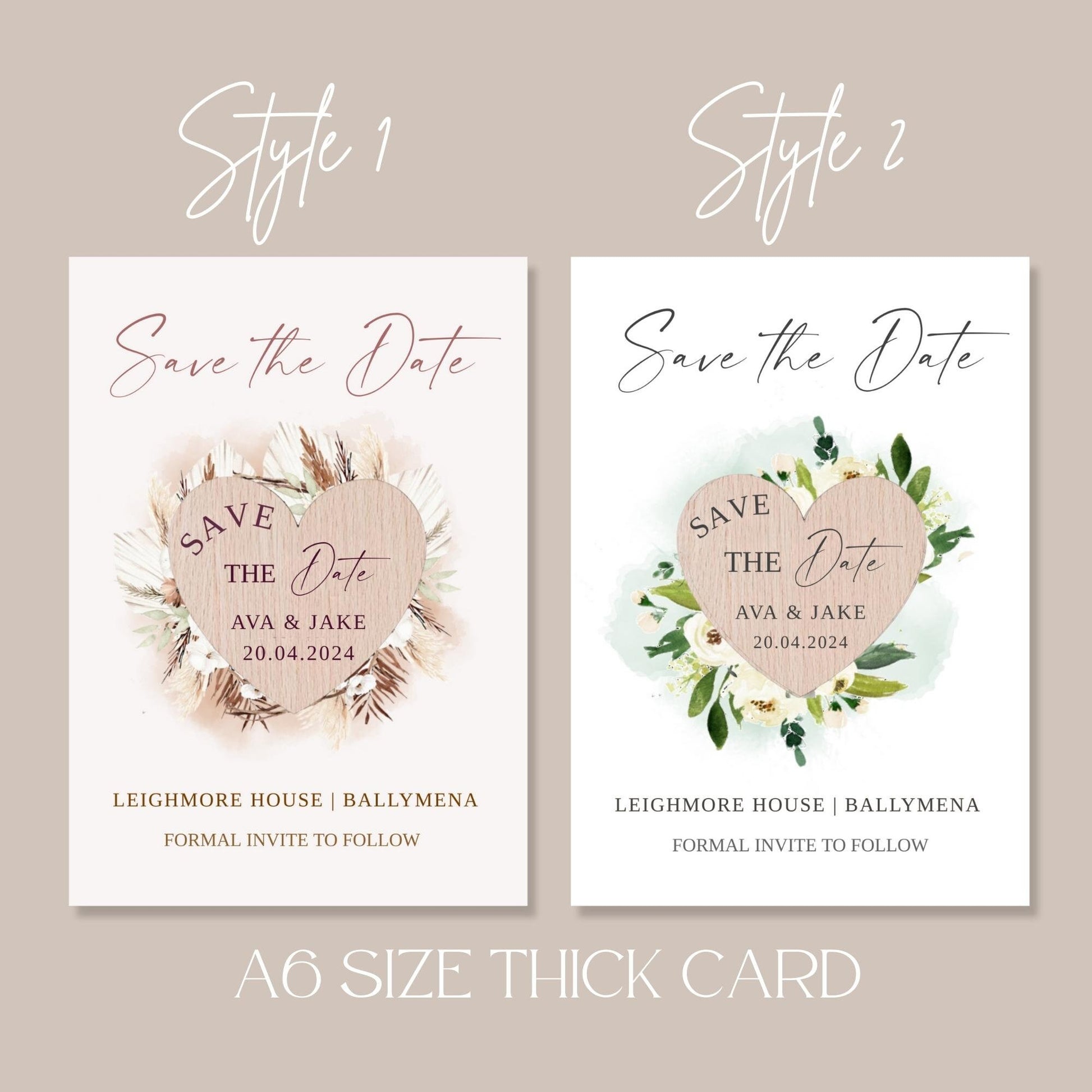 Announce your special day in style with our charming A6 Save the Date Cards, featuring detachable heart-shaped magnets that your guests will adore!