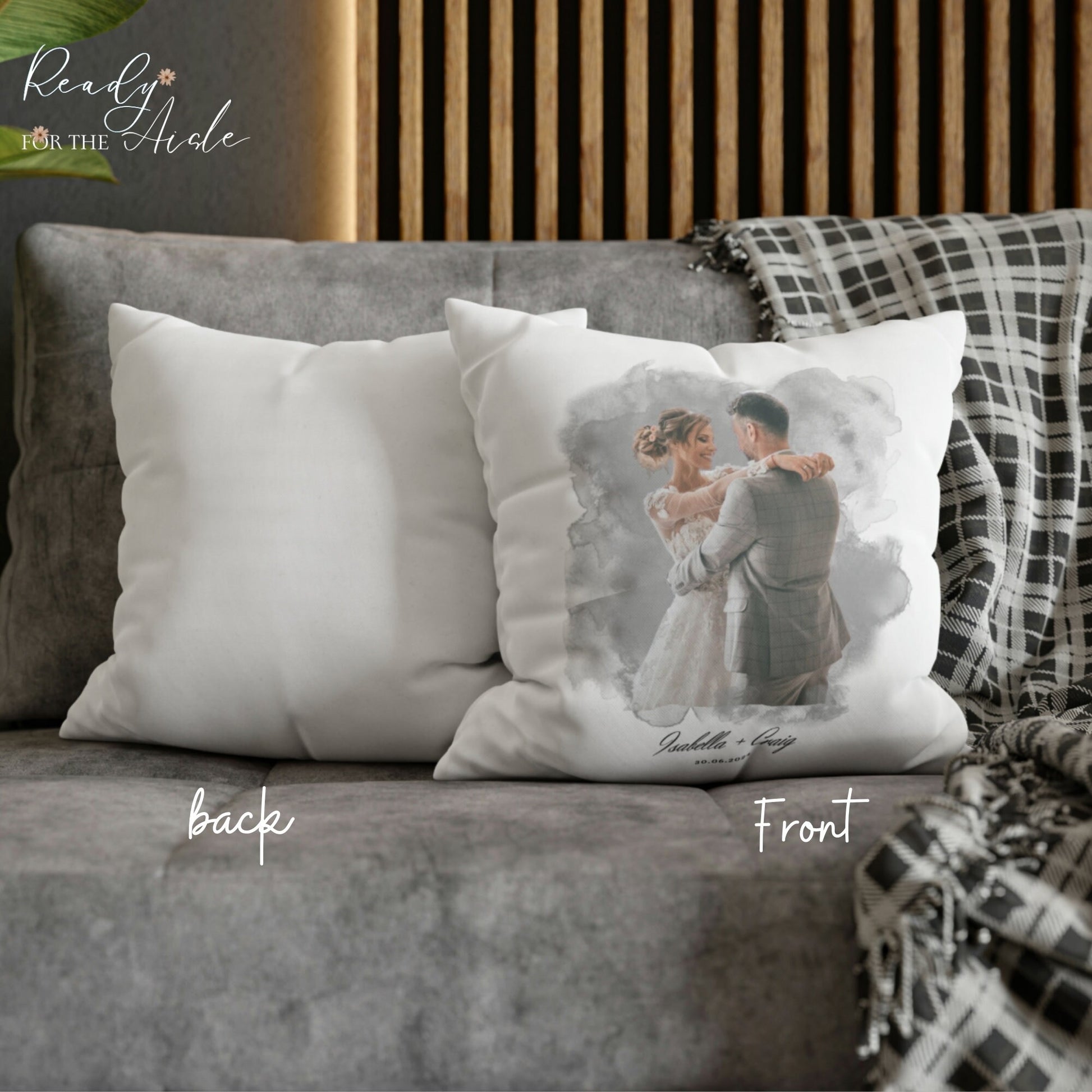 Capture the timeless essence of your love story with our personalized wedding cushion. Measuring 35cm by 35cm, this charming accessory features a delicate watercolor portrait of the happy couple, adding a touch of romance to any space. Whether it's for a cherished wedding gift or to celebrate a second anniversary, this beautifully crafted cushion serves as a heartwarming keepsake, symbolizing the enduring bond between two souls. Infuse your home with warmth and nostalgia or surprise a special couple with a gift that will be treasured for years to come.